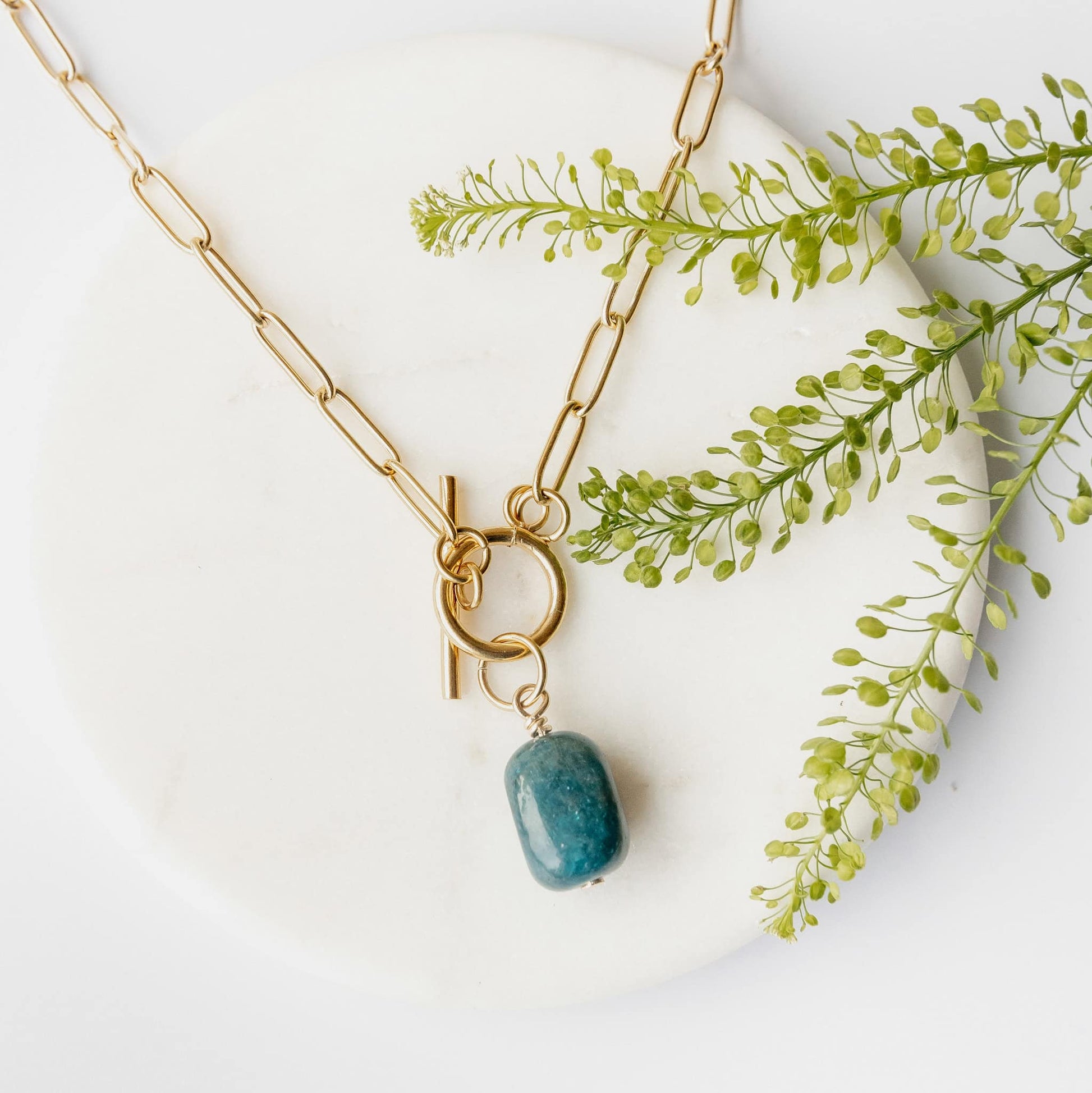 Our most popular paperclip chain comes with a stunning blue apatite stone nugget. Each stone is unique, with gorgeous natural features. Ideal for dressing up a casual outfit, or adding a touch of flair to a night out.