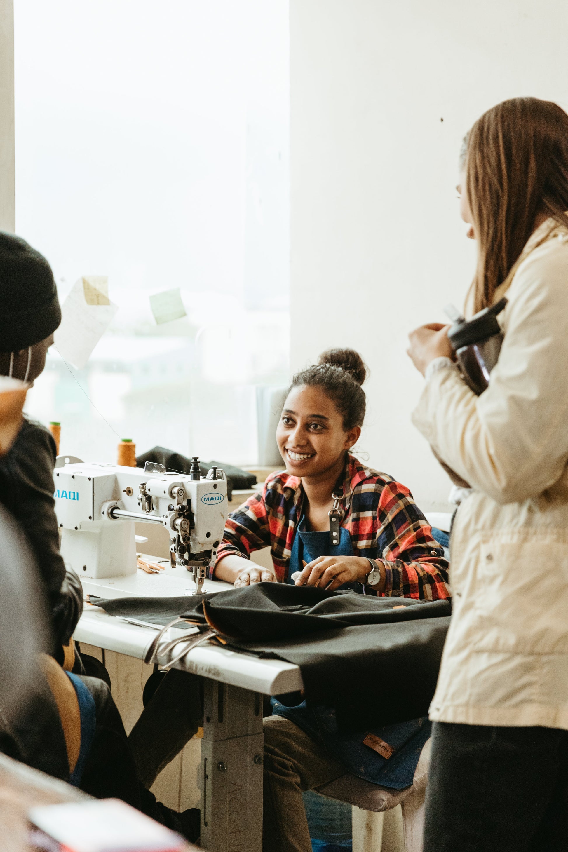 - Interior leather slip pocket with secure antique brass knob closure