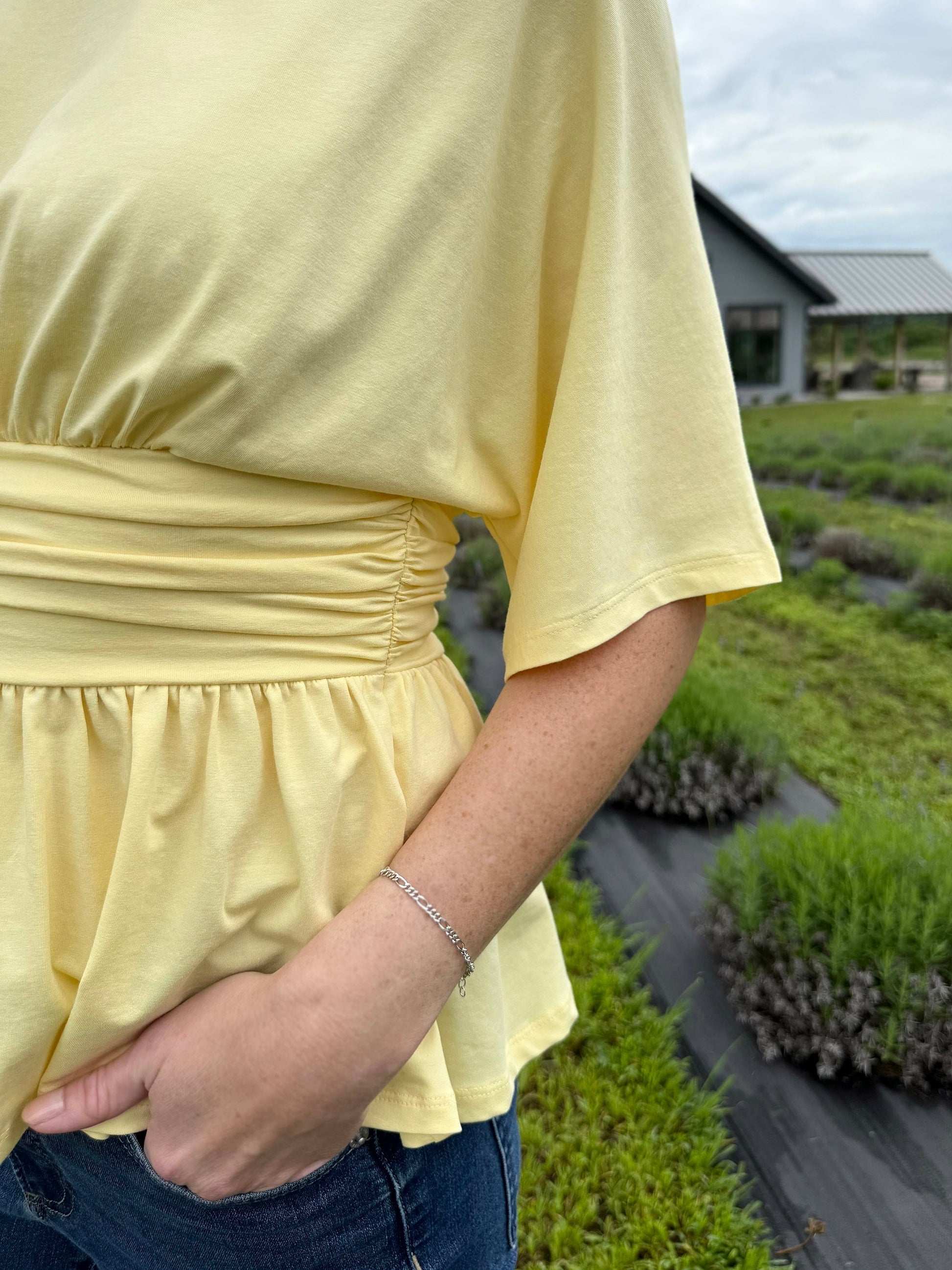 The Landree is the top version of our Sheba dress, designed to elevate any outfit. Its lined waistband defines your shape, while dolman sleeves offer a soft, elegant drape. The long peplum bottom offers a touch of playfulness while still feeling polished.