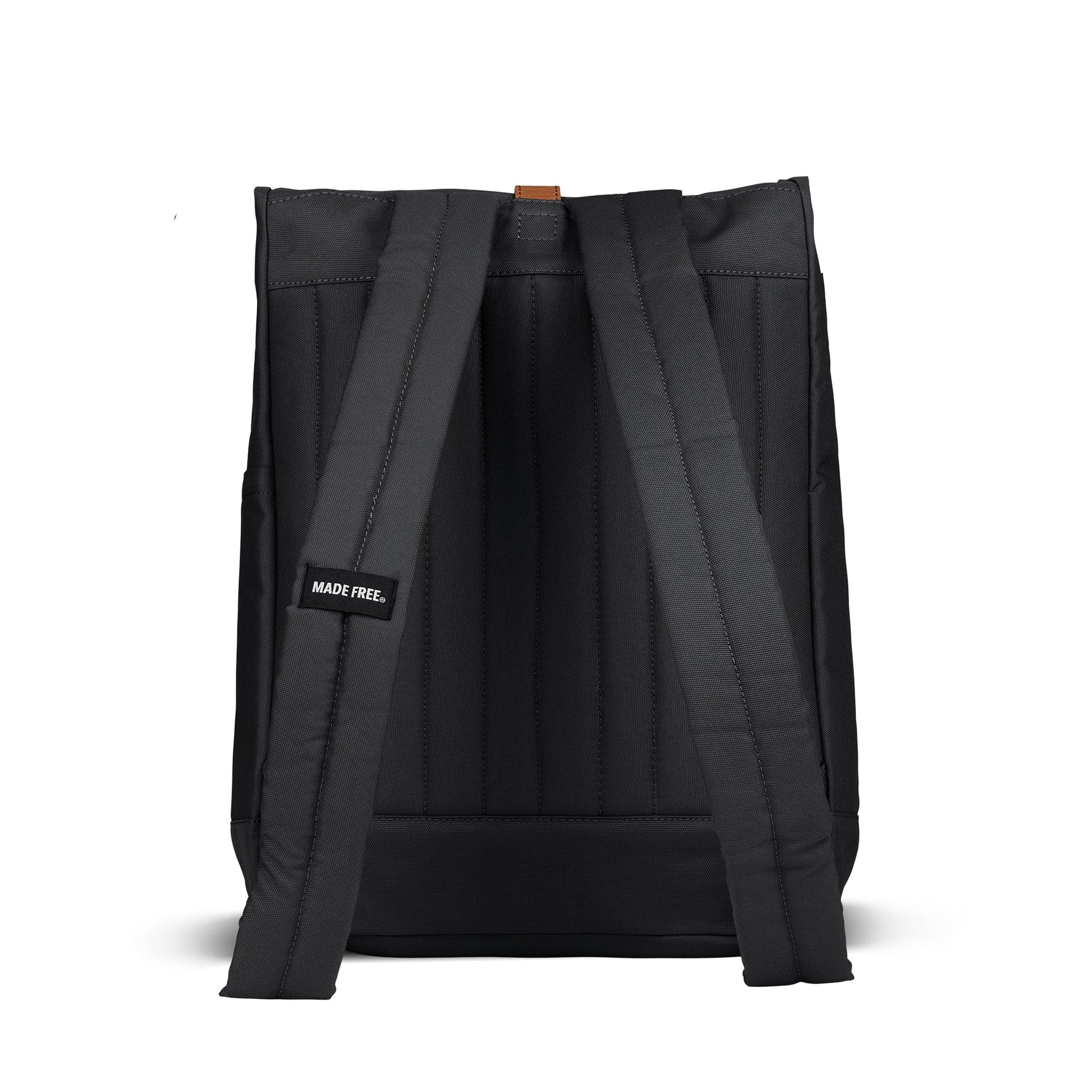 The backpack features a roll-top closure that lets you adjust its volume to meet your needs. Additionally, padded pockets and stylish leather trim enhance its security and comfort, ensuring a reliable and flexible carry throughout the day.
