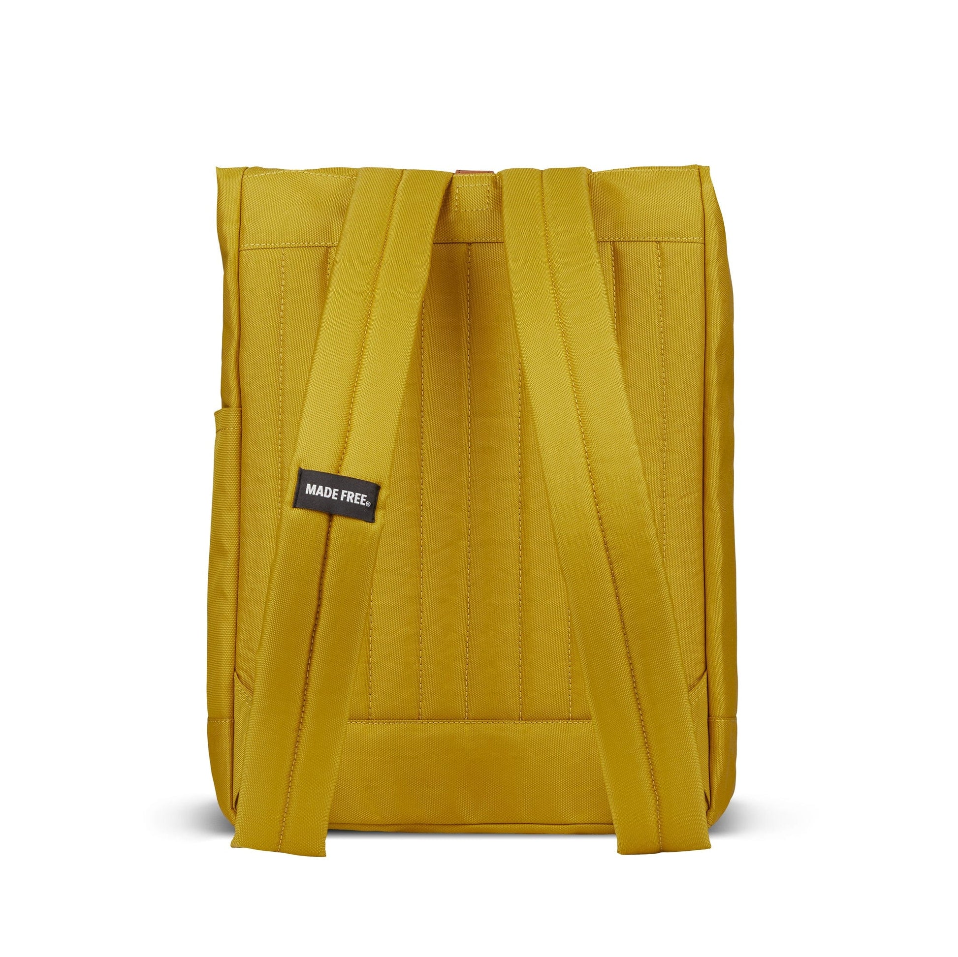 The backpack features a roll-top closure that lets you adjust its volume to meet your needs. Additionally, padded pockets and stylish leather trim enhance its security and comfort, ensuring a reliable and flexible carry throughout the day.