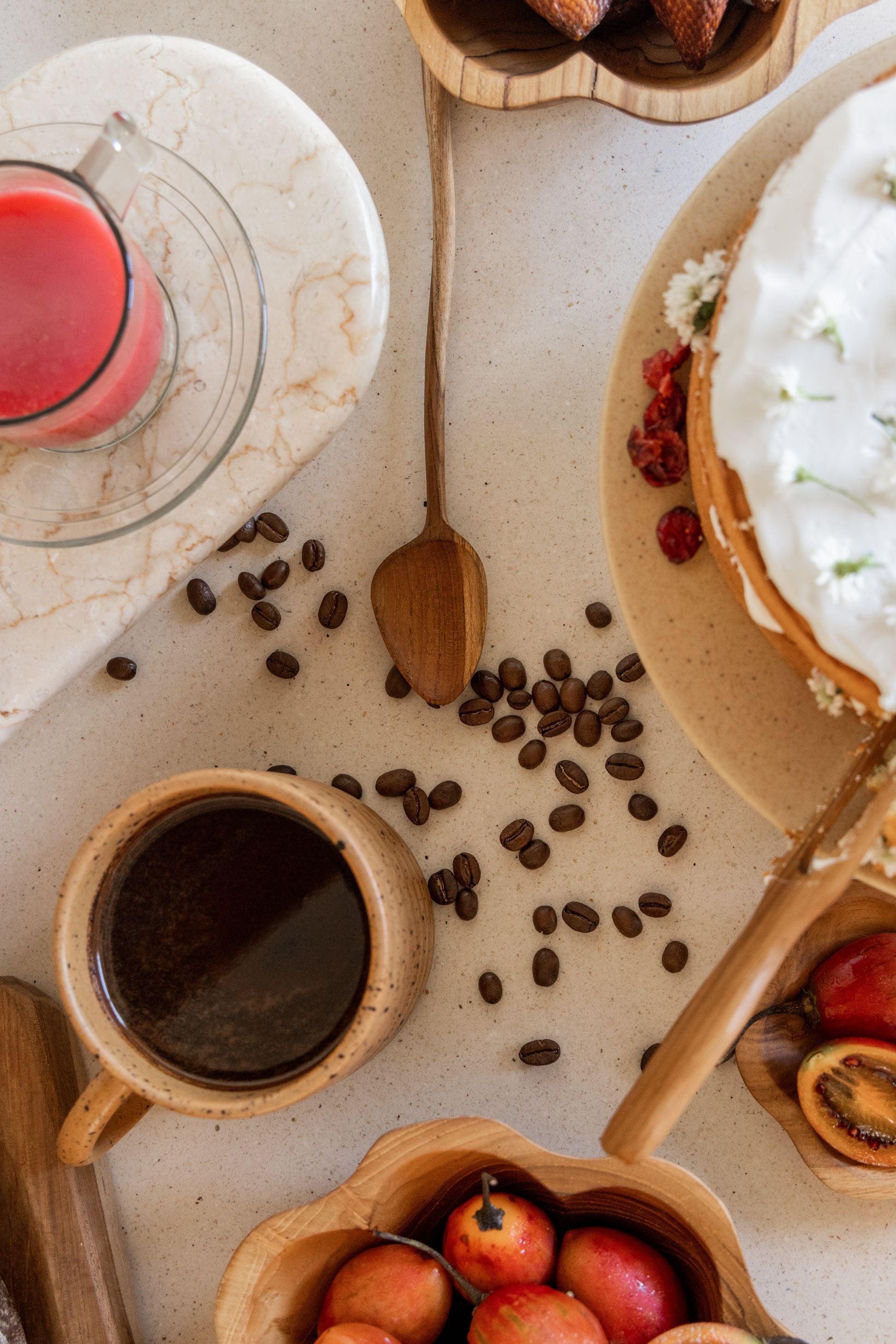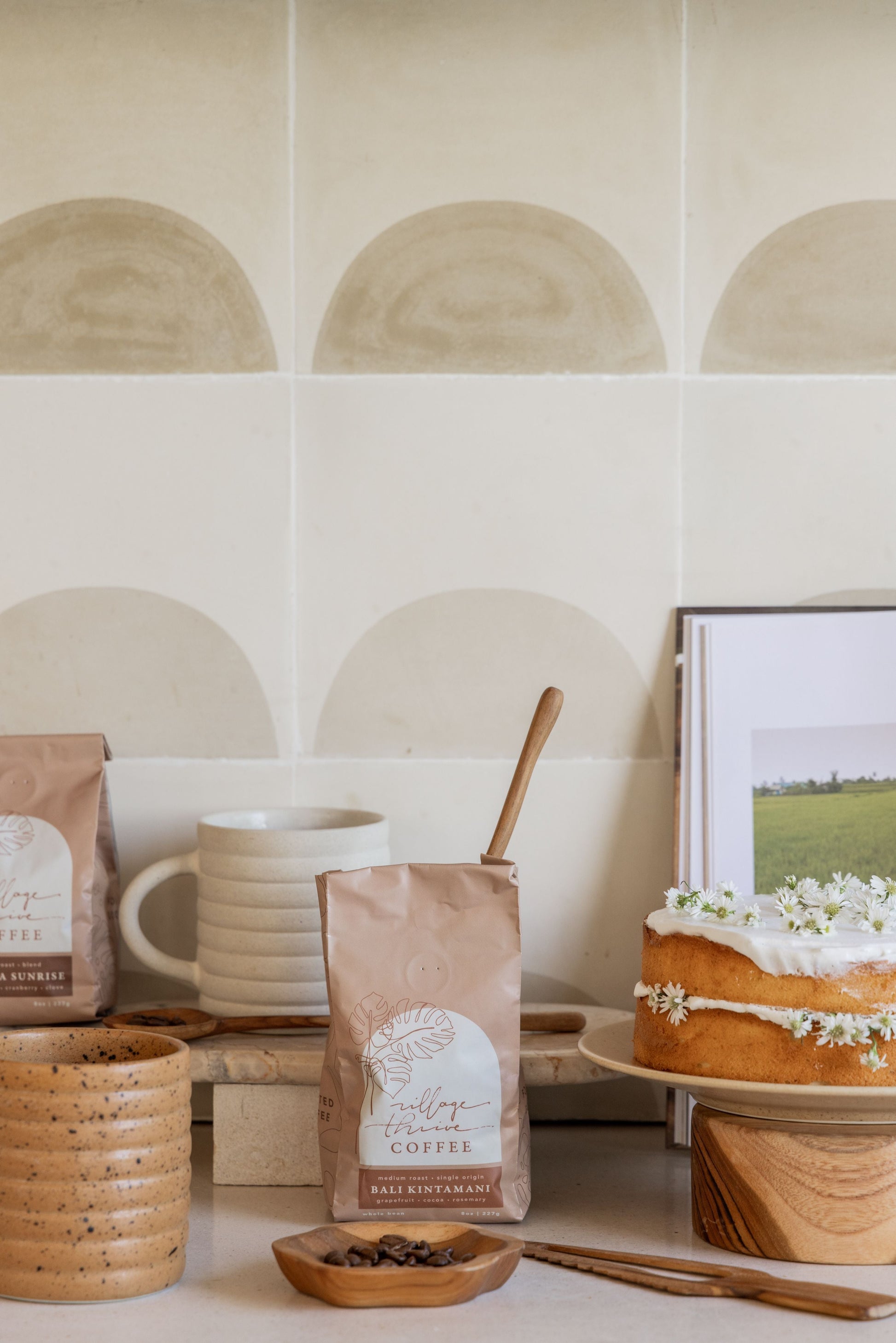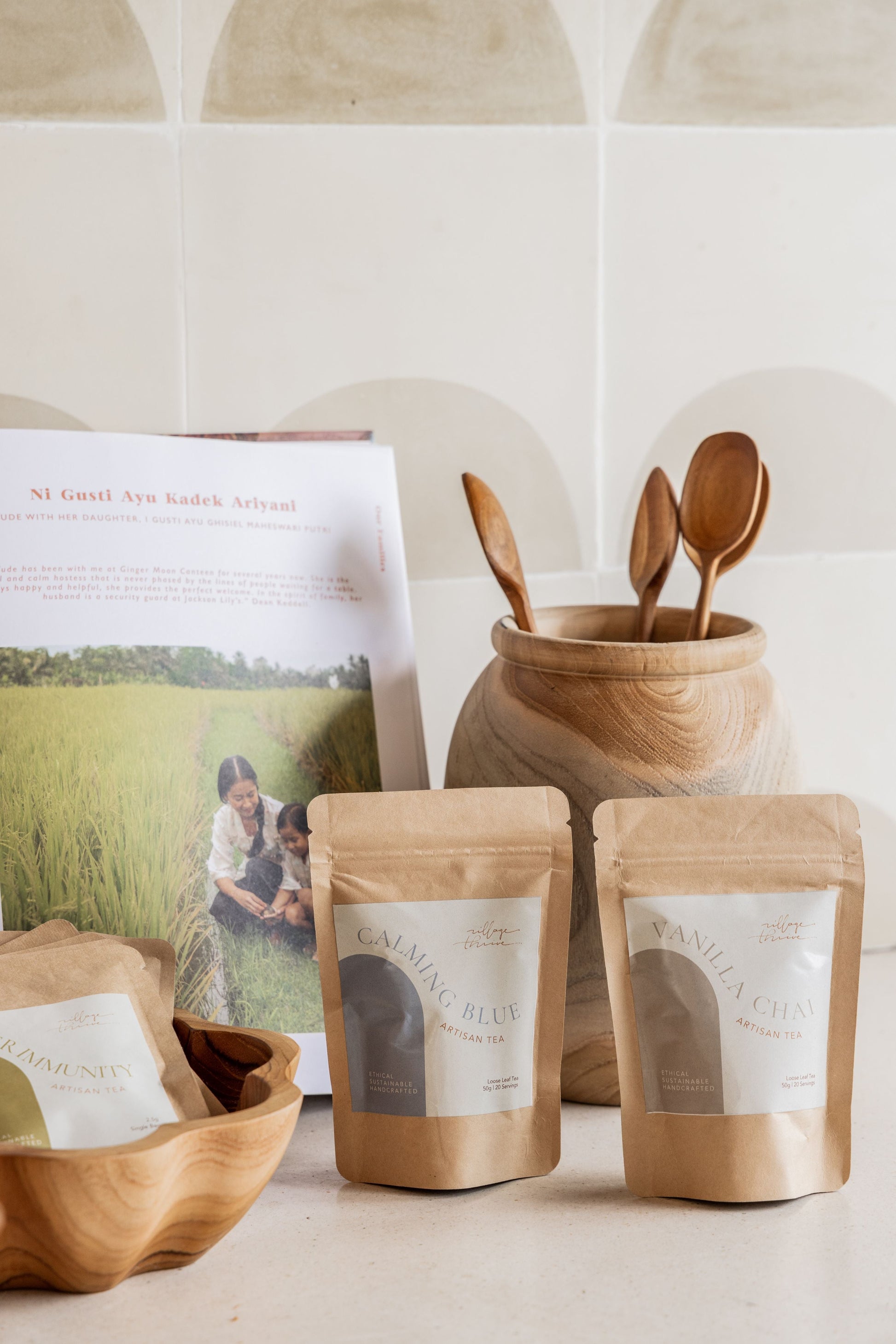 Hand carved from teak. No two are alike and boast a marbling of rich browns, golden hues, and tans.